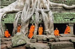 These trains, known as “norry” in Khmer, consist of a wooden frame, bamboo decking, an engine and wheels that come from a bust-up wartime tank. They chug up and down the railway line between Battambang and the outskirts of Phnom Penh. Naturally, they are illegal, but tolerated because they are so useful – and in any case there is only one real train a week up and down the line. Bamboo trains are used for carrying people as well as freight. A trip on one of these can be booked through most hotels, or you can arrange it through your local motorbike taxi or tuk-tuk driver.