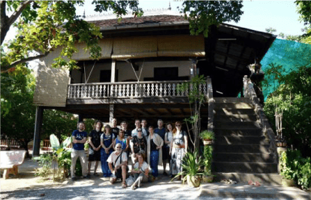 Wat Samraong Knong, roughly translated as 'Wat in the forest' is an extremely old pagoda on the eastern side of the Sangker River. The eerie old Wat was used as a Khmer Rouge prison, and there were many executions on the premises. A new pagoda is now being built, and there is a memorial to the victims of the Khmer Rouge regime, with graphic illustrations just to the north. There are several opportunities to explore villages just south of town. The Cultural village of Watkor, just a few kilometres south of the town centre has several "ancient wooden houses" from the early 20th century. Further south are the agricultural villages of Kompong Seyma, and Ksach Puoy.