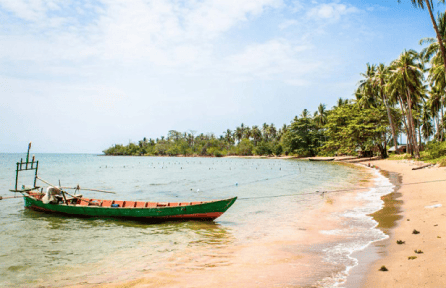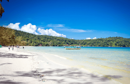Twenty to 40 minutes by local boat from Kep is Rabbit Island. A place of white sandy beaches and coconut palms, it is an idyllic day trip from either Kampot or Kep. Although the waters are clear there is no coral, but don't let that put you off donning a mask and flippers. Rabbit Island is a place of psychedelic fish.