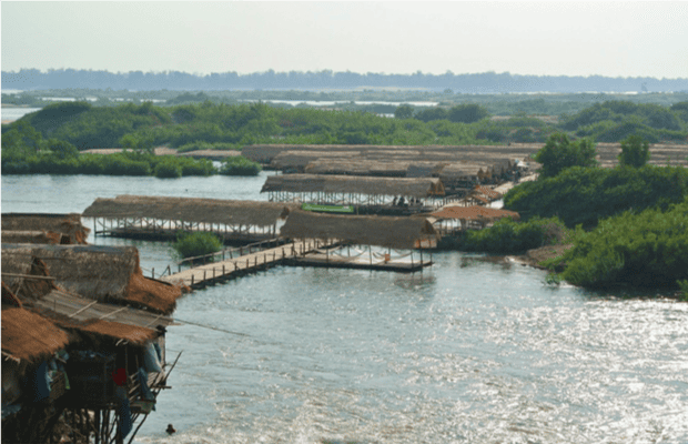 Kampi Resort is the great natural resort providing shelter to Dolphins. When we travel along the National Road No.7 to the North about 15 Kilometers from the provincial town, we will arrive at a bridge of Prek Kampi where we have seen a very novel view of the Mekong River consisting of thousands of islands full of green water plants. Usually from January to May, there are local and international visitors, who call on the Kampi resort for swimming, especially during the Khmer New Year.